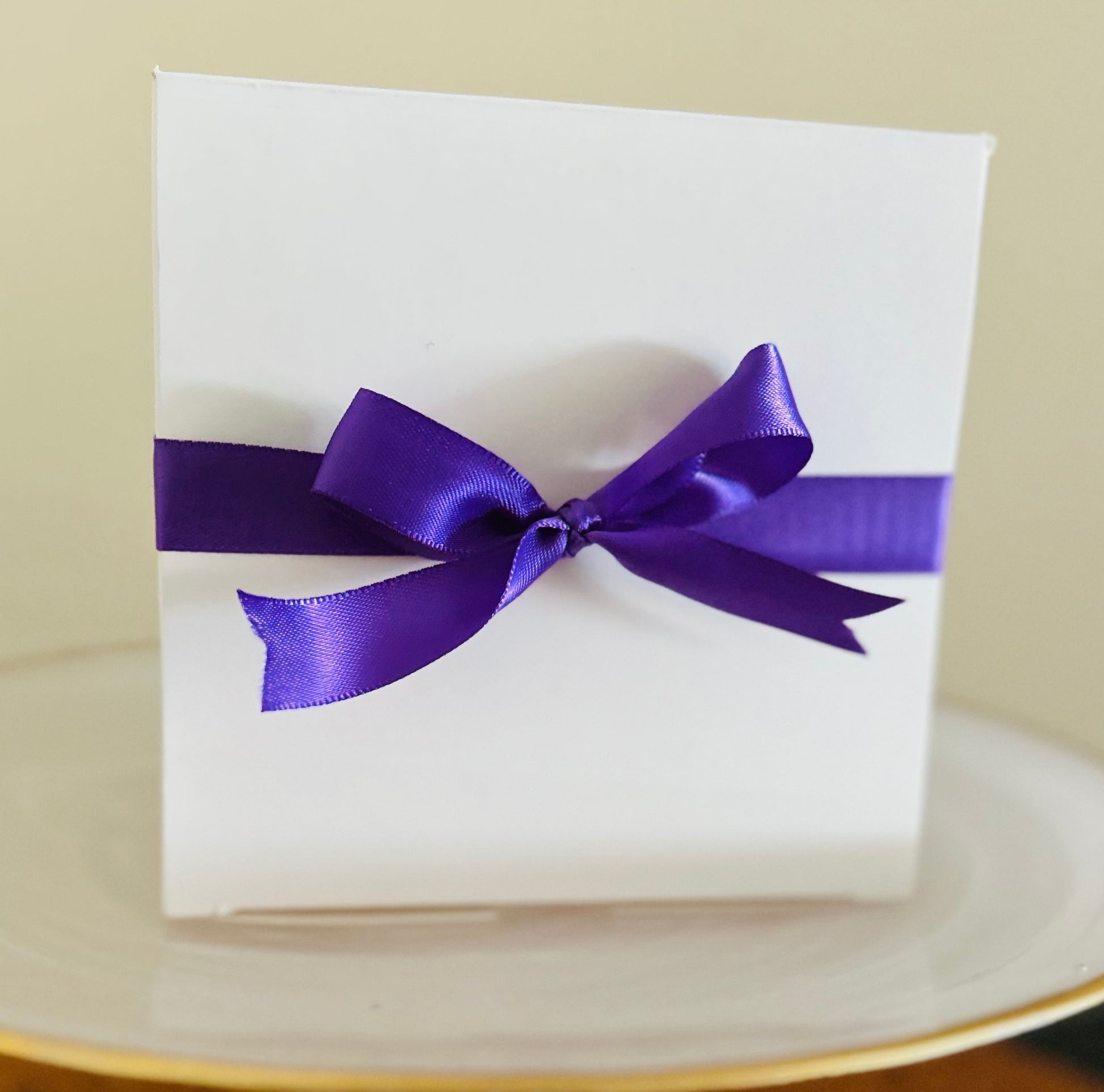 Comes gift packaged ready! Choose your ribbon color (shades of Purple, Red, Blue, Gold, Black and multicolor).